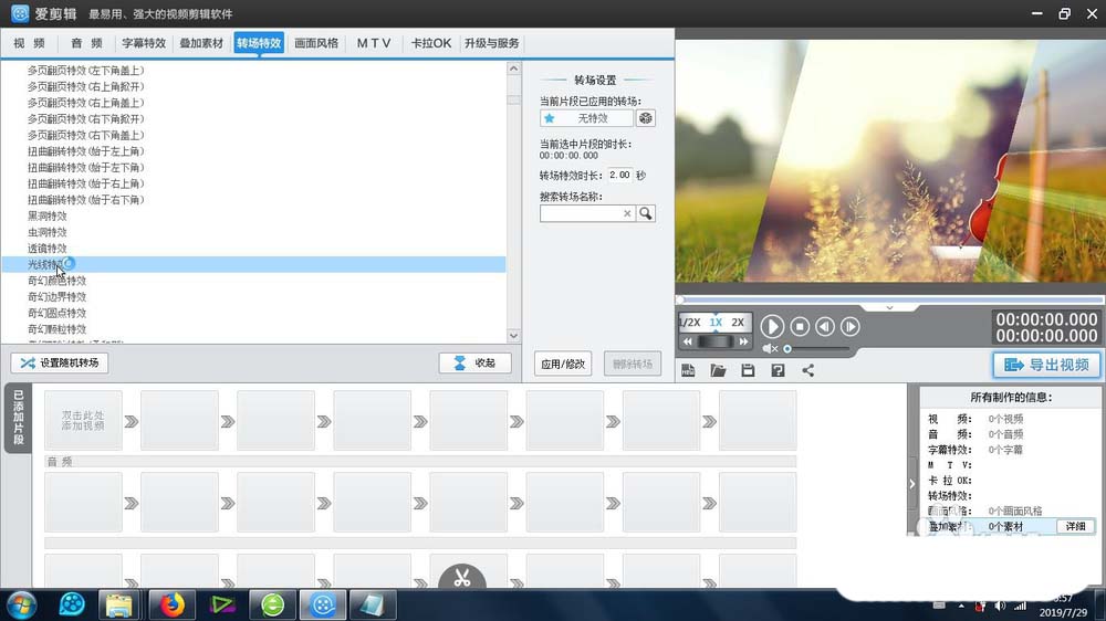 6、可以修改光线转场特效转场的持续时间,直接爱输入框里输入持续时间即可