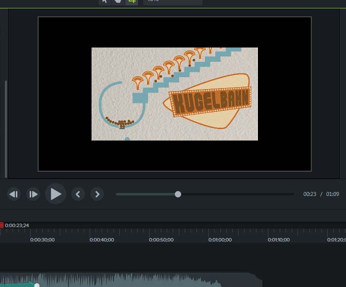 6、播放时间轴,当时间轴指针到缩放到合适动画的时候,就可以看到视频画面缩放动画了。
