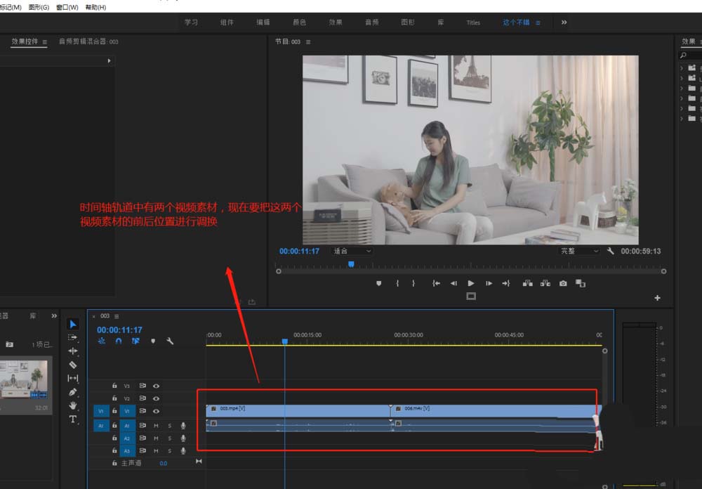 premiere时间轴中有多个素材,需要对着多个素材进行前后顺序位置的调换,该怎么调素材的位置呢?下面我们就来看看详细的教程。