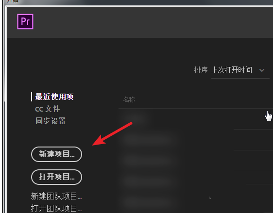 1、打开Premiere软件,进入界面,点击新建项目,建立一个项目,