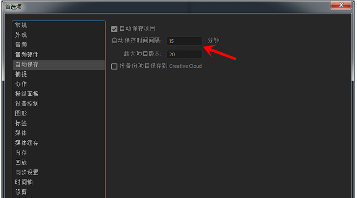 以上就是Premiere设置自动保存项目时间的教程,希望大家喜欢,请继续关注脚本之家。