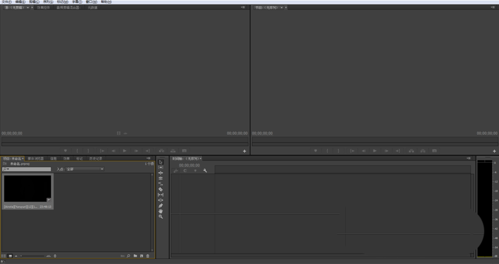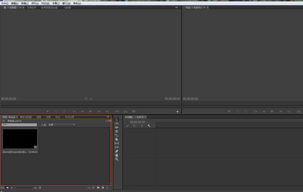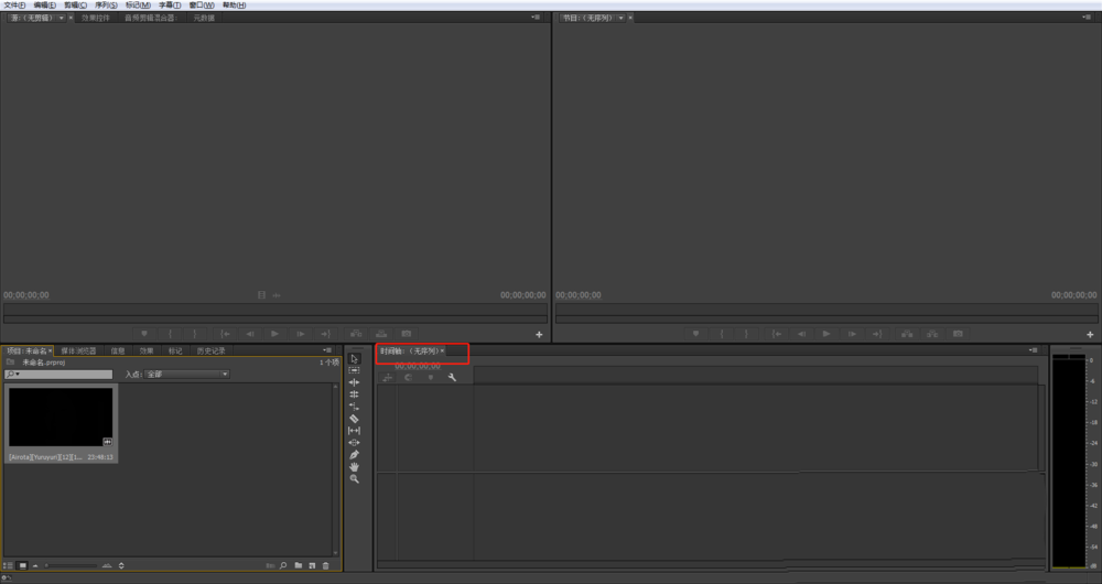 4、此时是无序列的,所以导致视频项目拖动不了到时间轴的界面