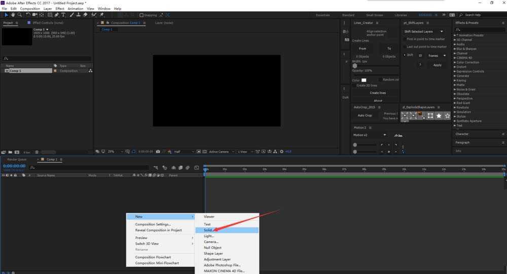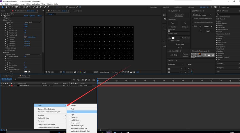 5、继续新建一个比较小的固态层,用来替换粒子(颜色根据自己需要)。