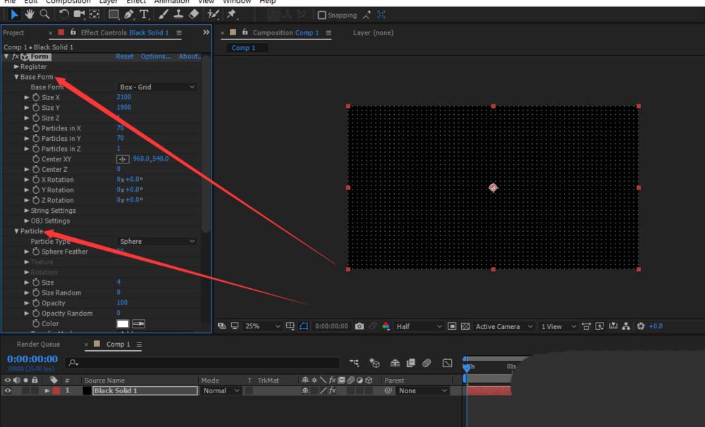 4、调节form的基本参数和粒子参数。