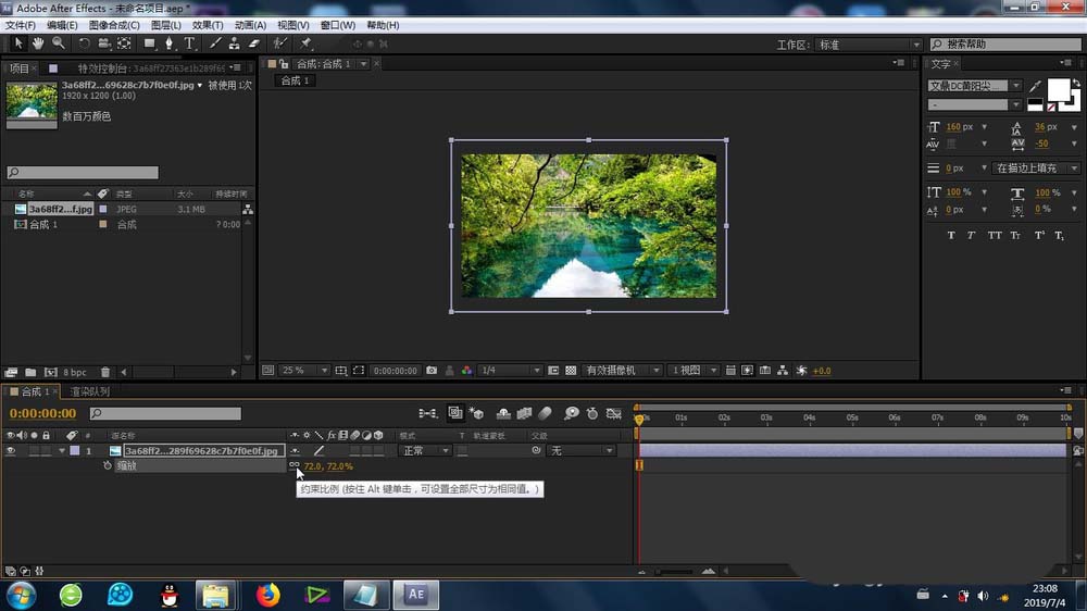 2、根据素材的大小,适当缩放,以便于最后效果的预览