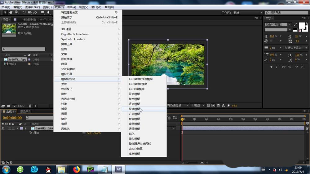 3、接下来的重点来了,选中素材,依次选择:效果-模糊与锐化-快速模糊