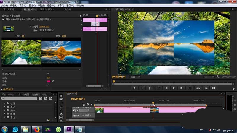 premiere中多个视频过渡的时候,可以添加一些视频切换效果,今天我们就来介绍中心拆分效果的使用方法,请看下文详细介绍。