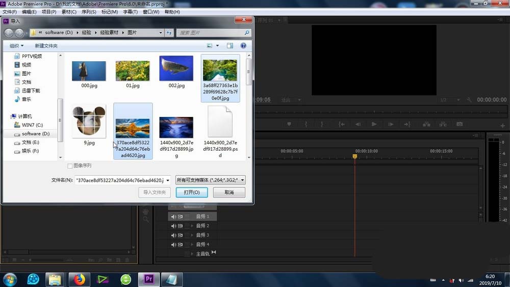 2、再有就是将速到进行导入素材库(图片或者视频都可以)