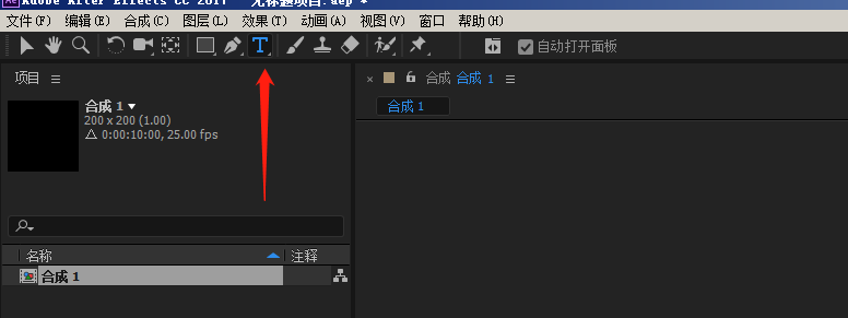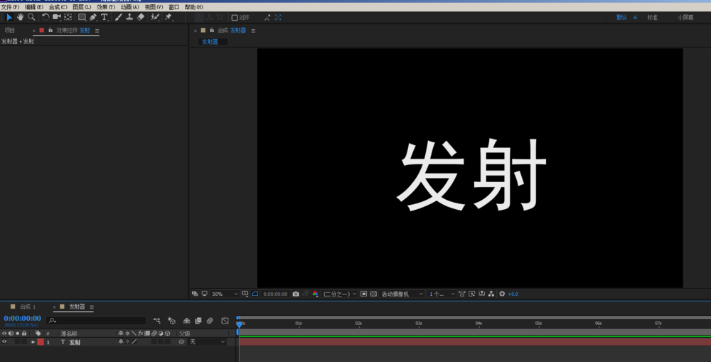 1、新建合成,名为 发射器 ,尺寸为1920X1080 。在这个合成内打上文字 【发射】