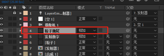 7、把【发射数字】图层复制一层,命名为【粒子拖尾】,把粒子形式修改Particle Type>Sphere;
