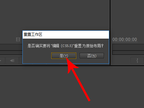 3、这时pr会打开“重置工作区”提示弹窗,然后点击“是”,这样时间轴面板就会回来了