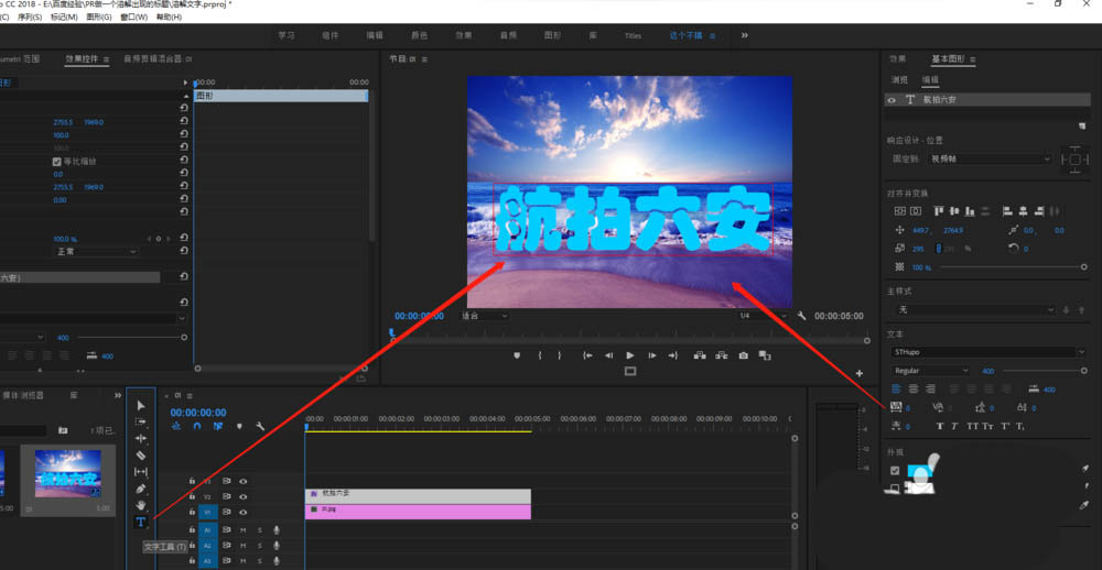 3、选择文本工具单击输入标题内容,然后单击文字打开属性设置窗口,设置标题文字属性。