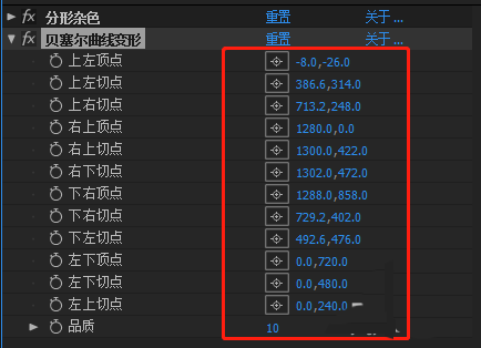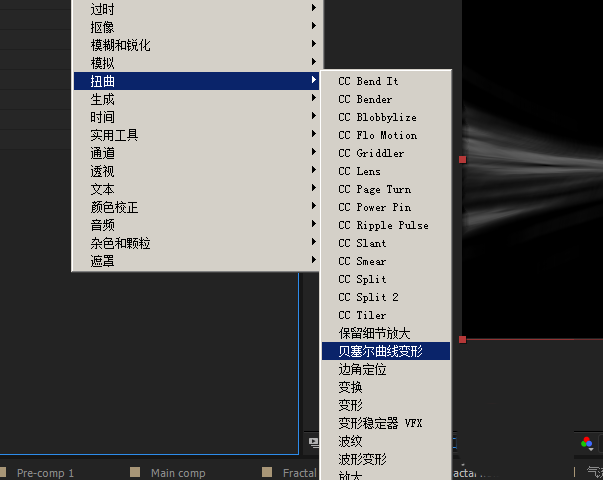 1、然后添加效果 贝塞尔曲线变形,设置参数如图