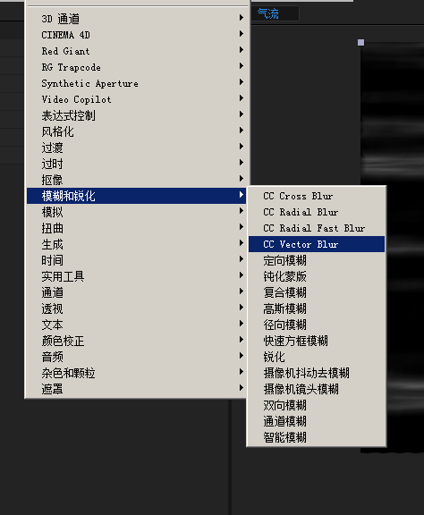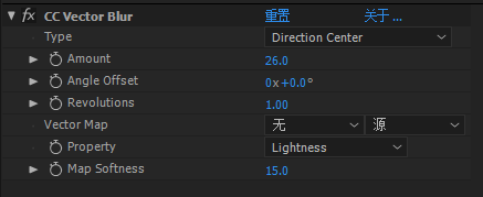2、新建一层调整节层,添加CC Vector Blur 效果,设置参数如图