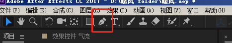 1、把气流合成放到新建的变形裁剪合成里面,选择钢笔工具,在气流层上勾画出需要的区域【这个区域可以自定义勾画】