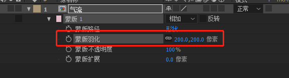 2、双击M键,然后把蒙版羽化改为200