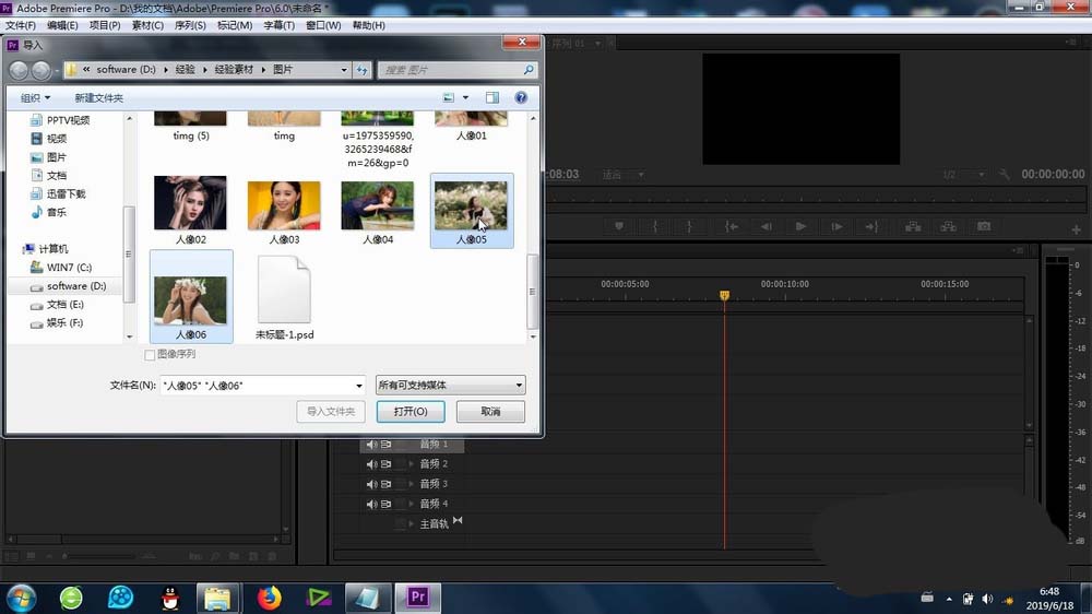 2、再有就是将素材进行导入素材库(图片或者视频都可以)