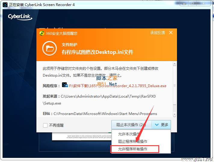 6、在安装过程出现如下图时,选择【允许程序所有操作】