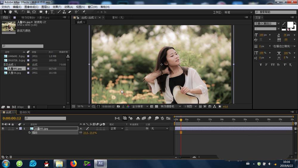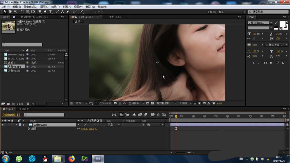 2、根据素材的大小,适当缩放,以便于最后吹泡泡效果的预览