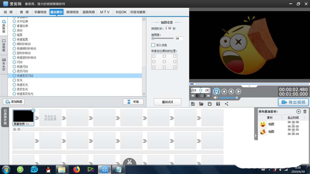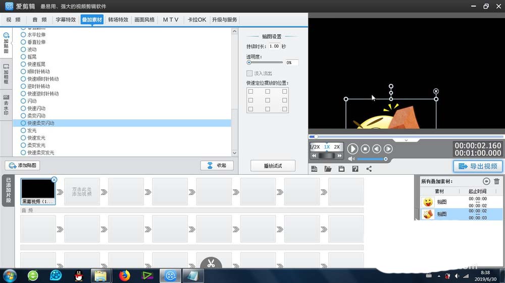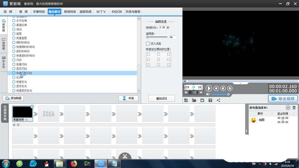 1、首先这个快速柔变闪动 -是在爱剪辑里面的叠加特效-加贴图-常用特效-里面可以找到