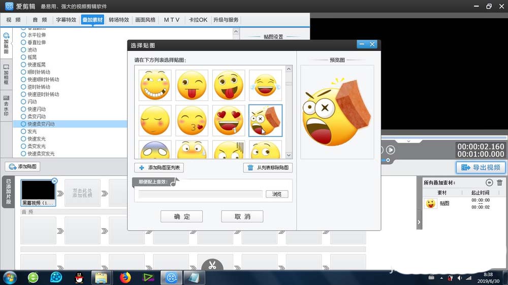 3、选择合适的贴图,确定之后,贴图就会出现在视频预览区域