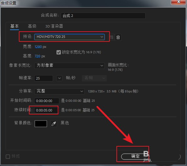 1、启动AE,新建一个合成。如下图操作