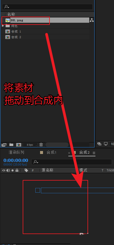 4、再将图片从项目面板拖动到刚才新建的合成中。