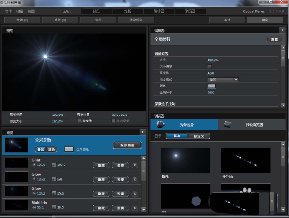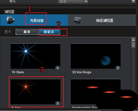 3、左边的自定义预设,可以添加单个光晕元素。