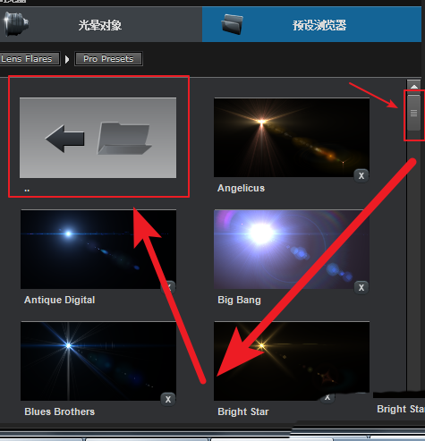 6、如果文件夹内没有想要的预设,还可以拖动到滑条的最上面,选择后退按钮即可退回重新选择。