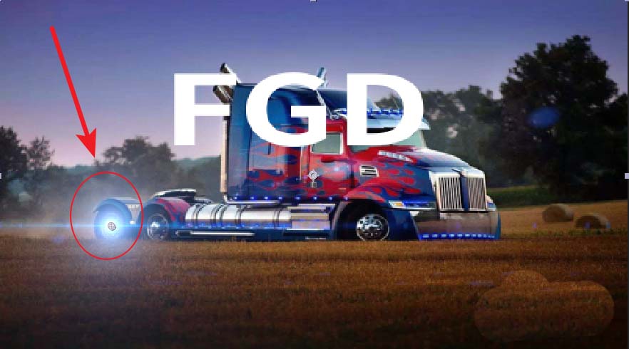 6、然后选中其它2个调整图层,用坐标工具,将2个光晕的位置定位到其它地方,比如定位到其它2个轮胎上。这样就有了3个闪烁的光源。