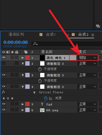 2、使用这个插件,需要一个调整层或者纯色层来承载,添加这个效果到纯色层或者调整层上就能使用,纯色层只需要选择相加混合模式就可以了。