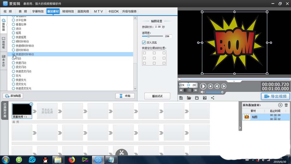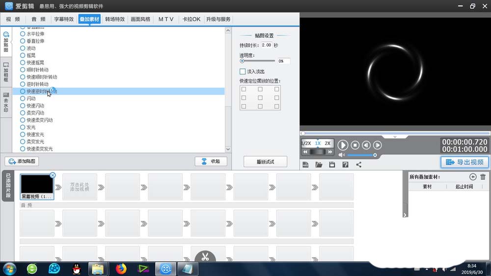 爱剪辑中自带了很多效果,想要添加快速逆时针旋转的特效,该怎么使用呢?下面我们就来看看详细的教程。