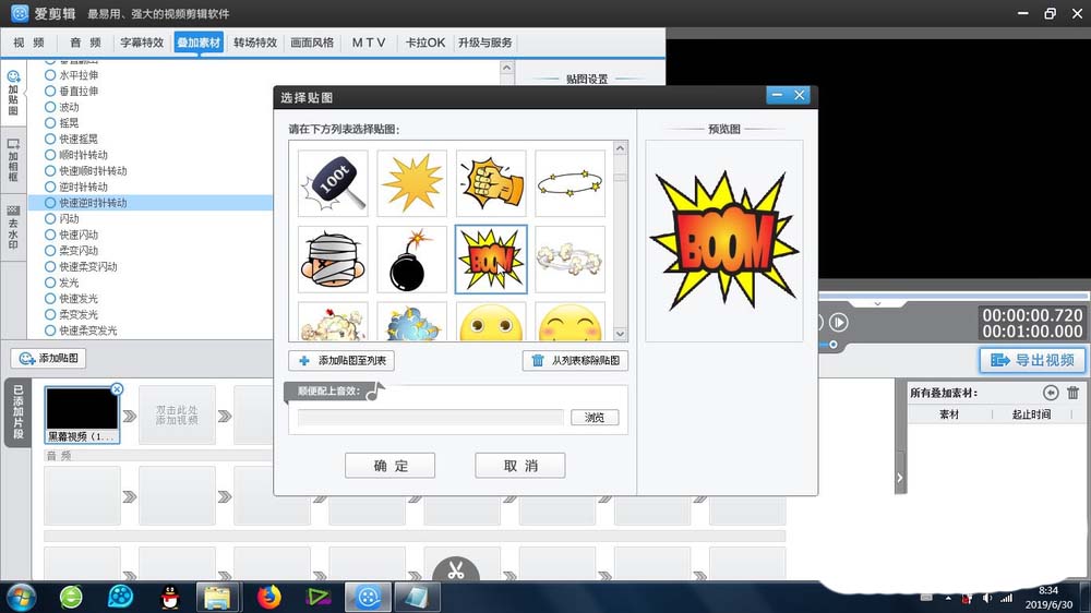 3、选择合适的贴图,确定之后,贴图就会出现在视频预览区域