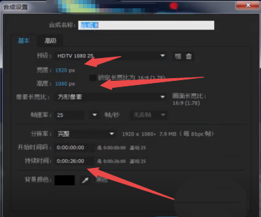 1、首选,我们新疆一个【合成设置】,设置好之后点击【确定】