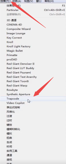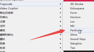 3、然后点击【效果】,找到【trapcode】,点击【particular】,这个粒子是动态的,本身自带运动的
