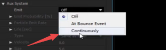 4、然后我们来实现一头大一头小的效过,我们在粒子设置里面找到【子系统】,然后进行下图所示的设置,将这个效果激活,点击【continuously】,然后就会在原有的粒子之上,会产生一条尾巴出来