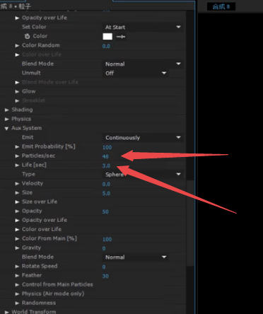 6、如果粒子数量多了,点击下图所示的地方进行修即可