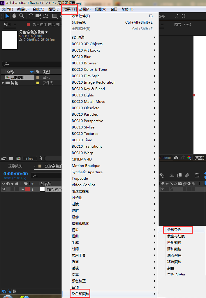 3、给纯色层添加分形杂色效果;效果-杂色和颗粒-分形杂色;