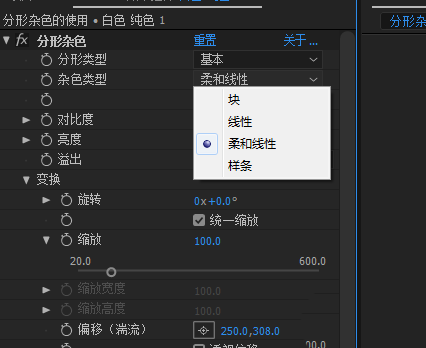 5、分层类型和杂色类型两个都有对应的下拉菜单,通过下拉中的不同选项搭配实现不同的效果;