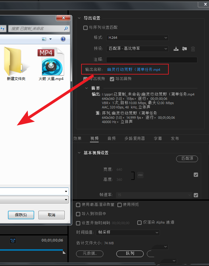 2、点击输出名称旁边的蓝色文字——选择一个保存路径。(这里选择的路径就是后面批量渲染的路径。)点击保存。然后再点击取消,退出导出设置。