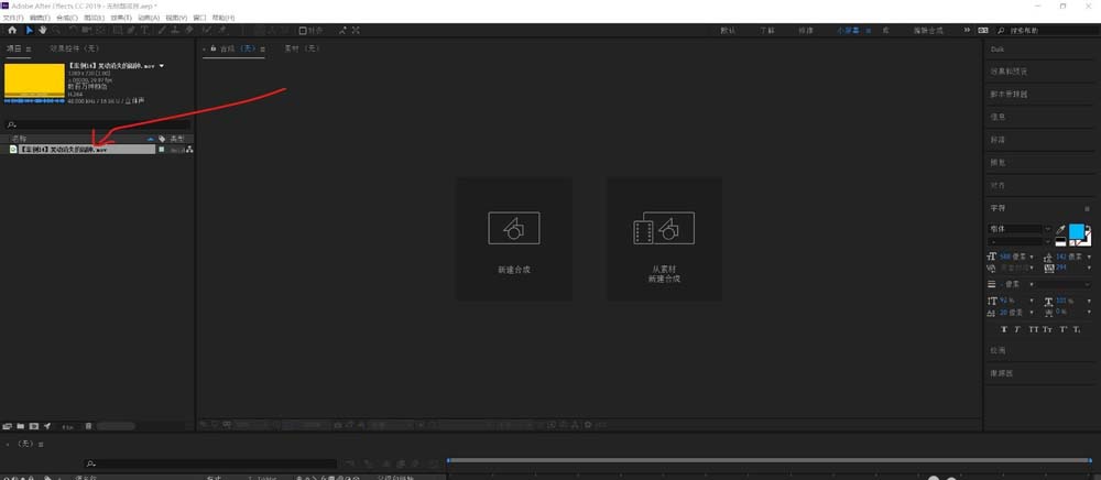 3、将素材拖动到新建合成,图标上,即可以素材大小,创建一个合成