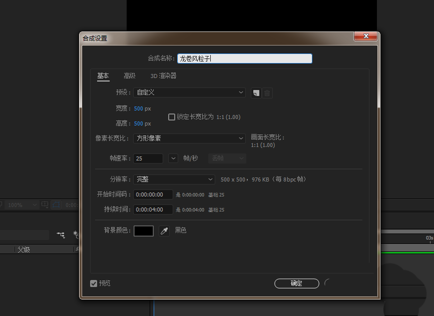 1、打开AE软件,新建合成,命名龙卷风粒子,调整相应的参数。