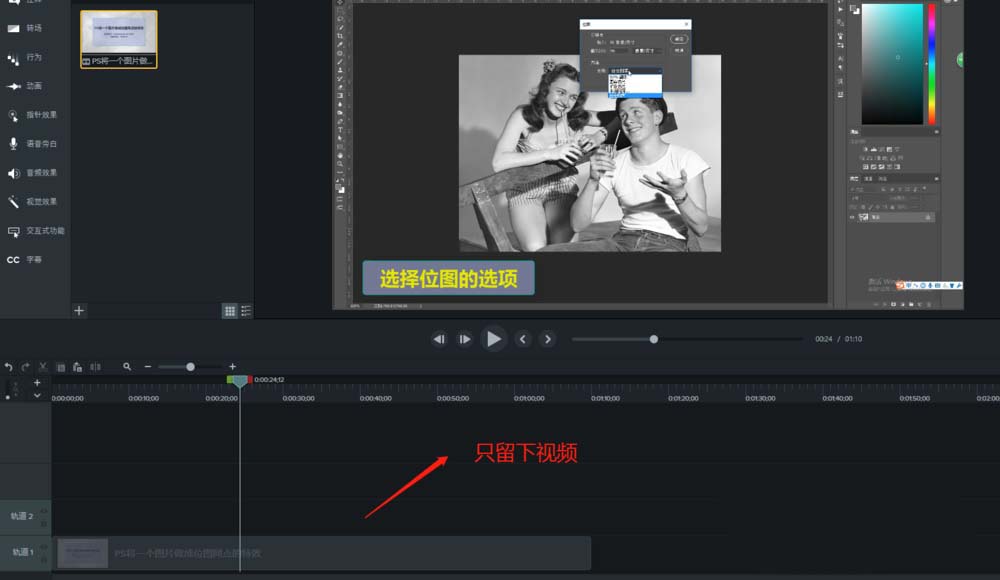 6、点击删除音频之后,就只留下视频了,这样我们就在Camtasia 9中将视频的背景音频给分离并删除了。