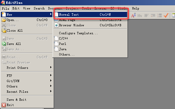 2、打开EditPlus并点击【File】--》【New】--》【Normal Text】选项新建一个文本文件。