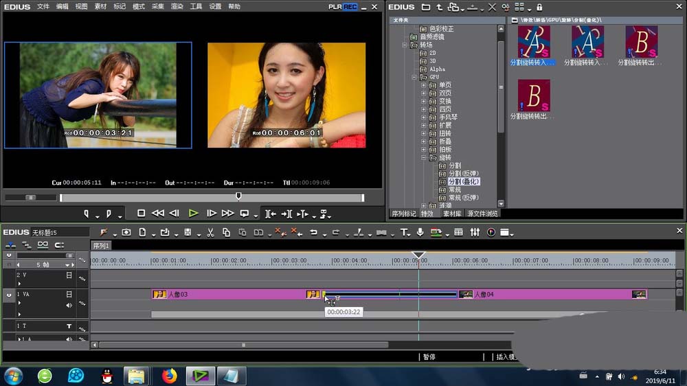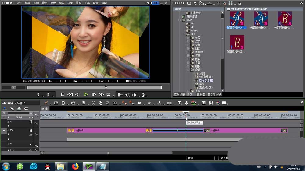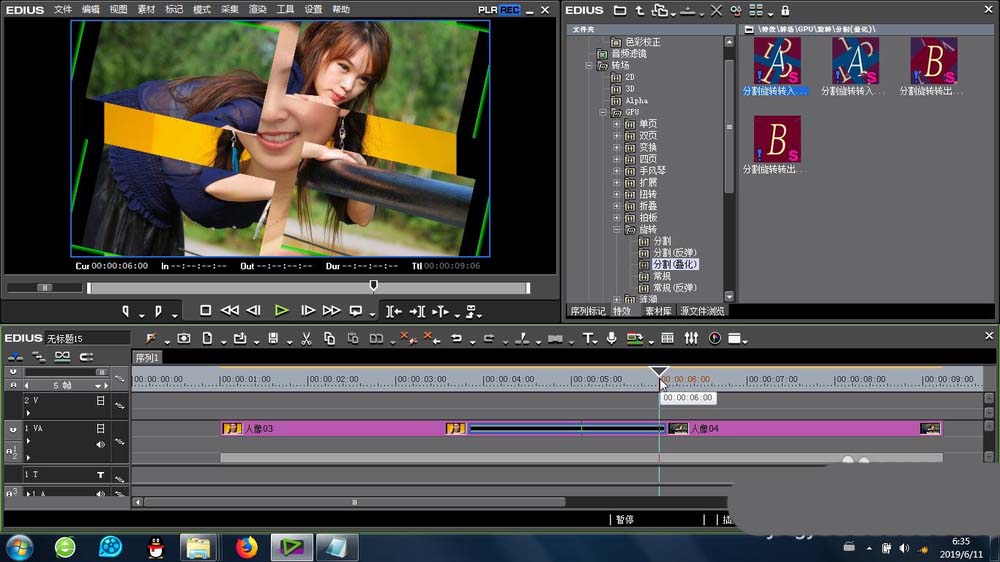 以上就是edius给素材添加分割叠化旋转转场效果的教程,希望大家喜欢,请继续关注脚本之家。