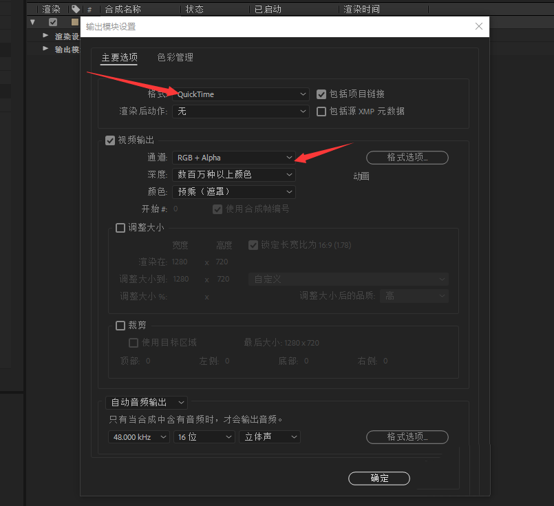 6、ctrl+m 导出 ,格式使用quicktime ,rgb+alpha。