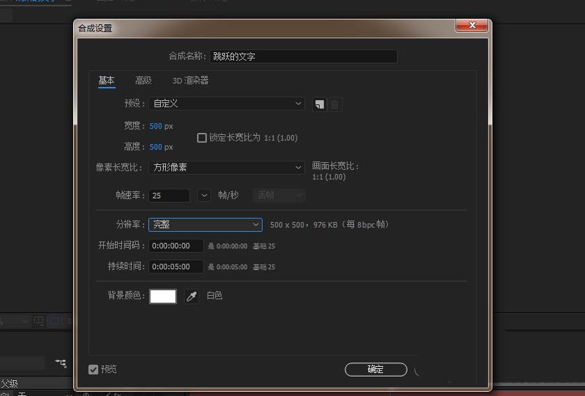 1、打开AE软件,新建合成,命名跳跃的文字,调整相应的参数
