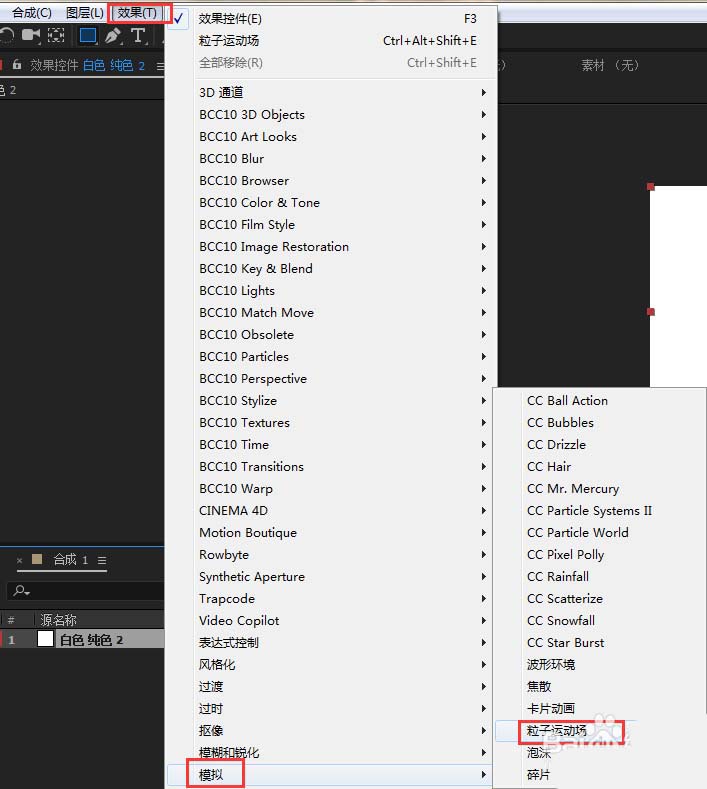 2、CTRL+Y新建一个纯色层,添加粒子运动场效果;