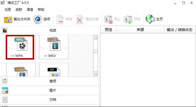 打开格式工厂,进入界面,在左侧选择一种要转换的格式,这里选择视频原先的格式,