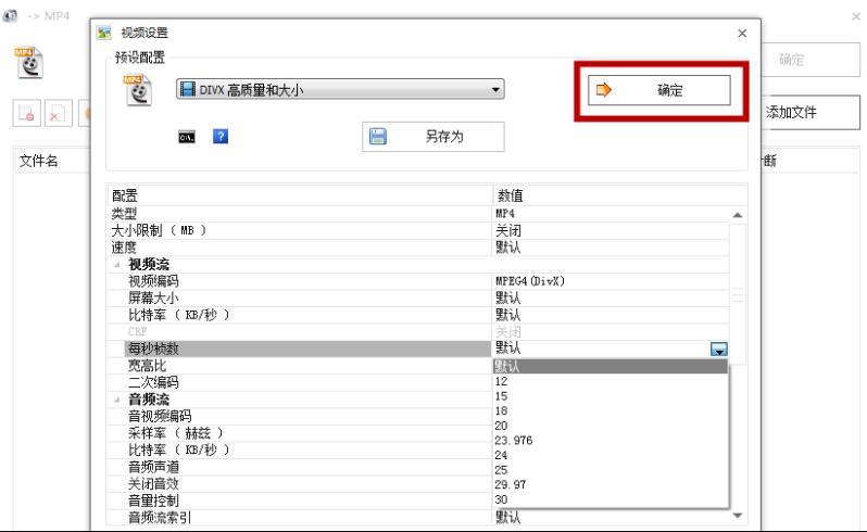 如图,修改帧数可以调整视频的播放速度,数值越大代表视频播放越快,选好之后点击【确定】,